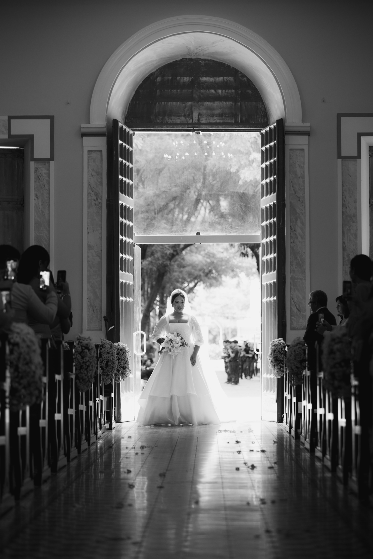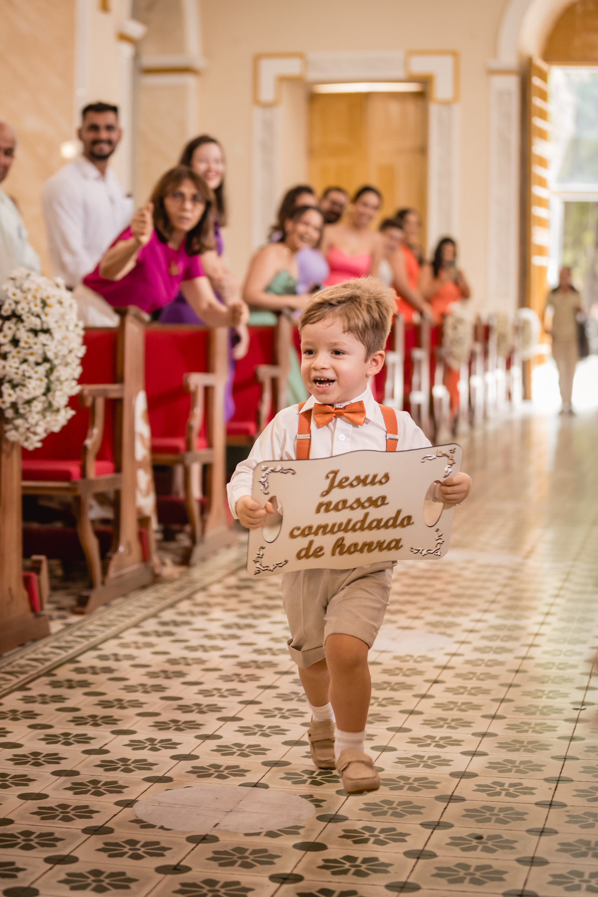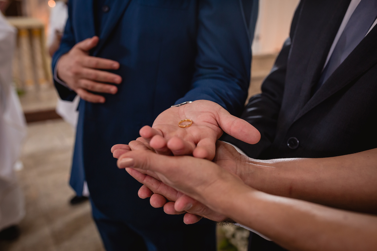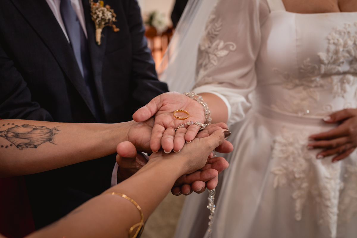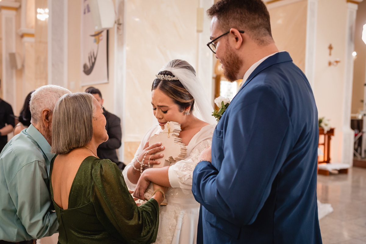 O "sim" foi abençoado por luzes suaves que atravessavam os vitrais e por olhares que carregavam história, entrega e muito sentimento.